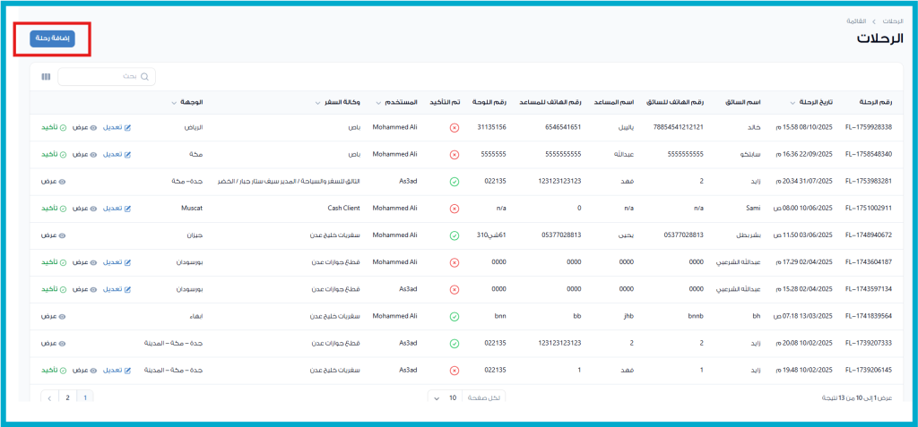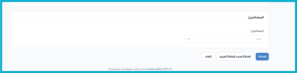 - إضافة وبدء إضافة المزيد: لتسهيل إدخال عدة رحلات متتالية دون العودة للصفحة الرئيسية.