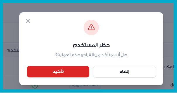 1. بجانب كل مستخدم ستجد خيار “حظر المستخدم”.